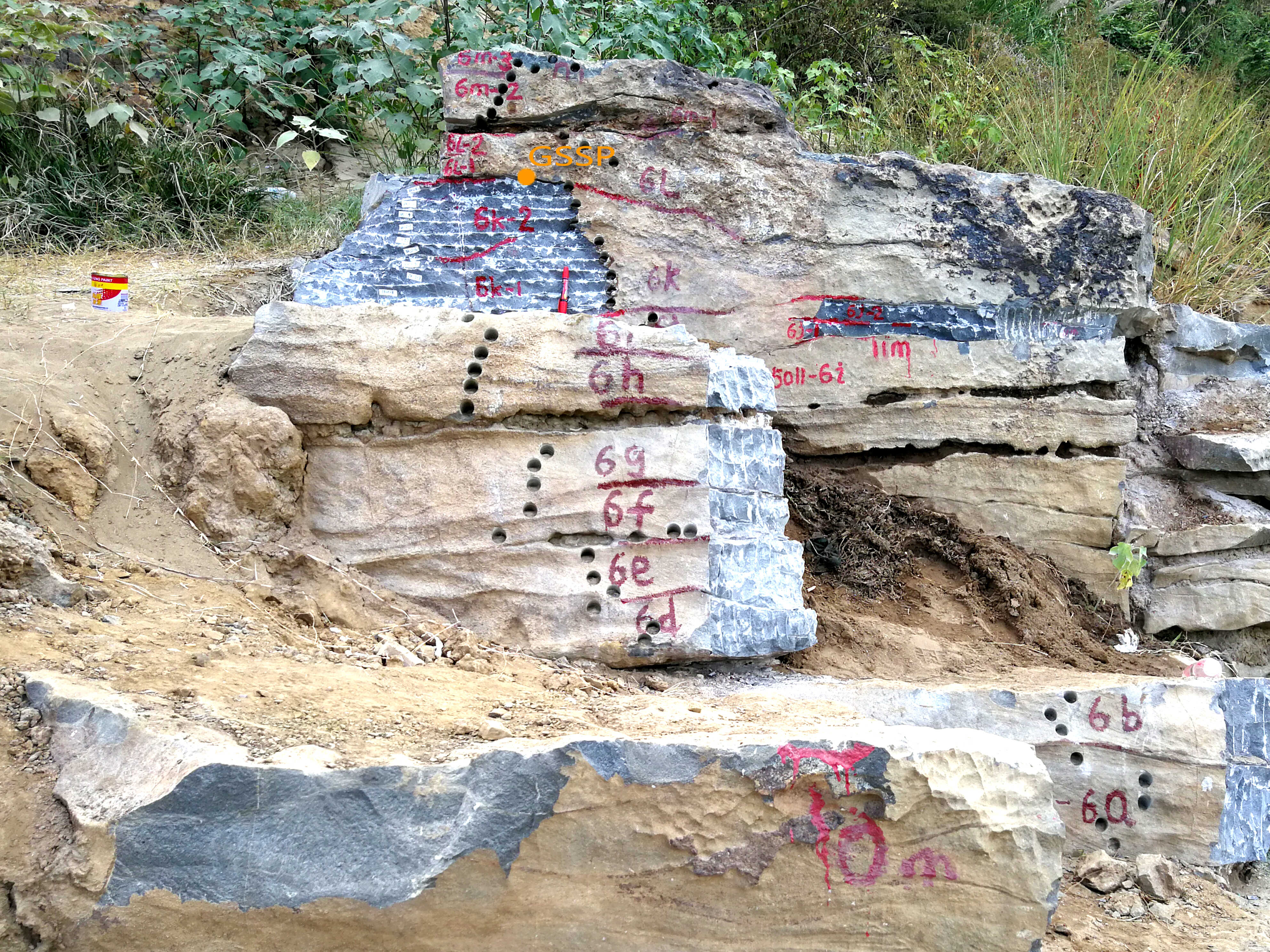 2023年7月24日,通过地质人不懈的努力,新的二叠系乐平统吴家坪阶全球标准层型标准和层型、辅助层型剖面和点位(即“金钉子”)正式获得国际地科联批准,广西来宾市蓬莱滩新剖面的第n6L层之底成为新的乐平统底界“金钉子”,自治区地矿局推进的来宾市蓬莱滩“金钉子”剖面抢救性保护和开发利用工程取得重要成果。