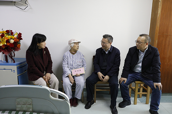 慰问组看望慰问地调院离休干部(黄雄基/摄)