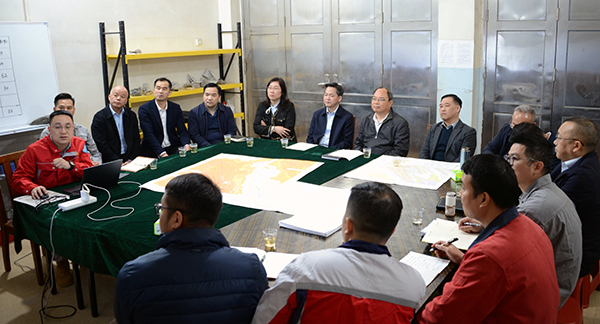 郑杰忠对各项目组长期扎根野外一线,以叩石问脉的执着坚守持续攻坚克难、抢抓勘查进度并取得阶段性进展表示充分肯定。他强调,要深入贯彻落实自治区关于推进有色金属及关键金属产业高质量发展的部署要求,聚焦南丹关键金属高质量发展综合试验区建设需求,以超常之举统筹利用好财政资金投入,保障好关键金属矿产整装勘查项目按要求高效推进。要强化技术创新和协同攻关,在遵循地质找矿规律的前提下,大胆探索创新管理机制,集思广益破解技术难题,力争以最快速度形成储量报告,为政府矿权出让和产业布局提供决策依据。要严守野外工作安全底线,严格落实安全生产各项规章制度,做好野外作业人员的安全防护和后勤保障,确保项目推进全程安全无事故。要统筹力量形成合力协同攻坚,打破队伍和专业界限,主动对接地方建立常态机制,协调解决涉农用地等问题,让一线地质队员心无旁骛扎根深山、专注找矿,为服务广西高质量发展贡献地质力量。