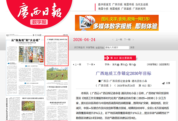 近日,《广西日报》《中国矿业报》《经济》杂志网站等多家媒体报道我局印发落实《地质工作支撑服务新时代壮美广西建设总体方案(2025—2030)》分工方案内容。全文如下: