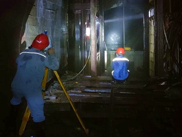 据该项目负责人介绍,此次测量工作面临诸多挑战:竖井内设备密集,两条测量垂线间距仅有3.23米,远低于常规要求的5米;井深中段多,井下环境水汽重、视线差,测量难度非常大。面对困难,项目组迅速成立技术攻坚小组,通过多次实地勘查、反复论证和精密演算,最终制定出一套针对性解决方案:优化垂线悬挂工艺,采用高精度测绳与稳定配重最大限度减少干扰;创新观测方法,借助先进测量设备,增加观测次数、优化观测时段,并运用专业软件进行数据联合处理,有效提升数据精度。